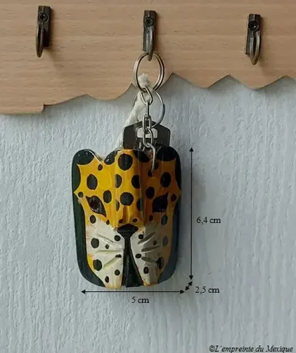 Ce porte-clés représente un jaguar, animal sacré des civilisations mésoaméricaines. Symbole de force et de protection, il incarne également une espèce aujourd’hui menacée de disparition.