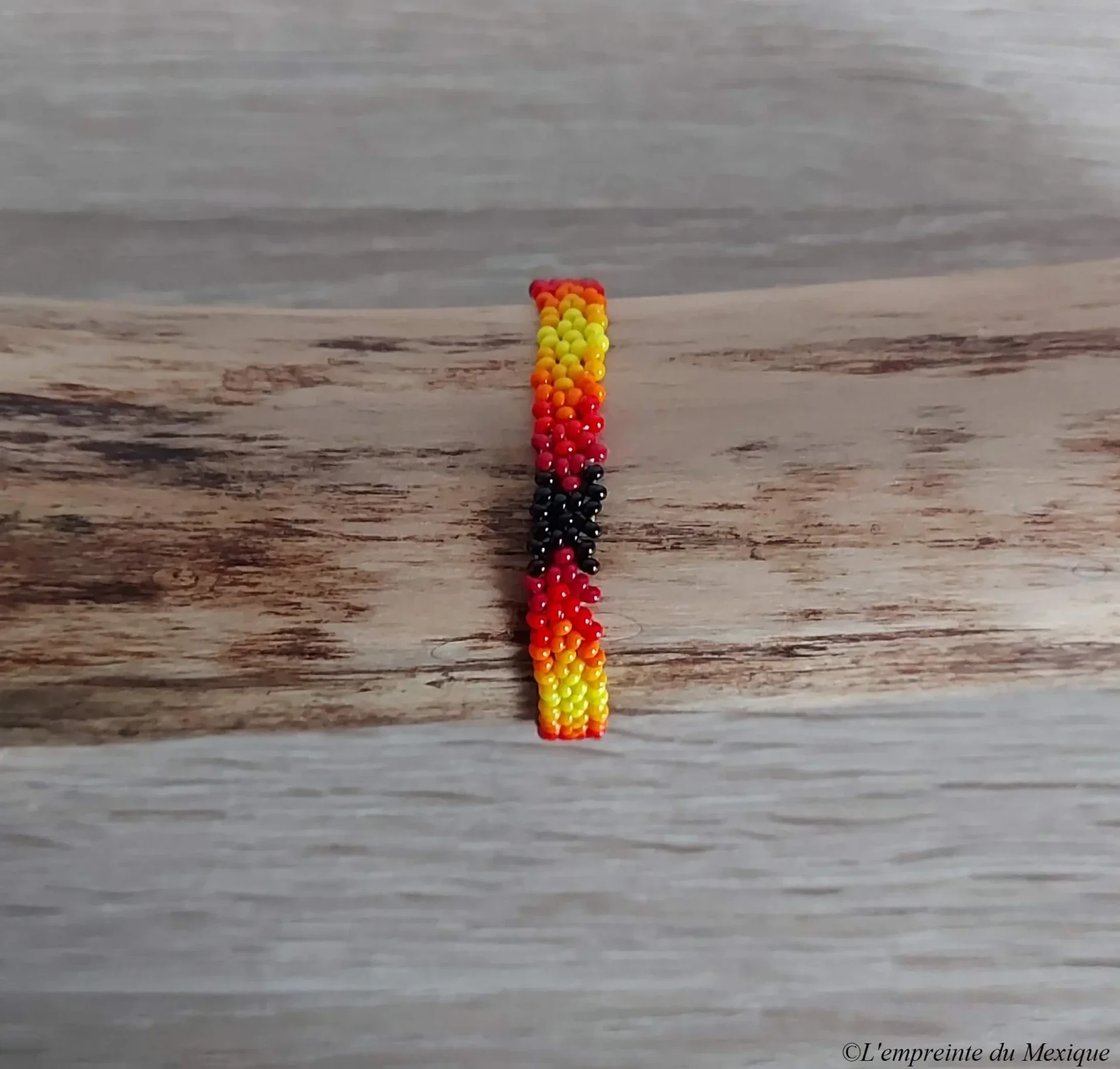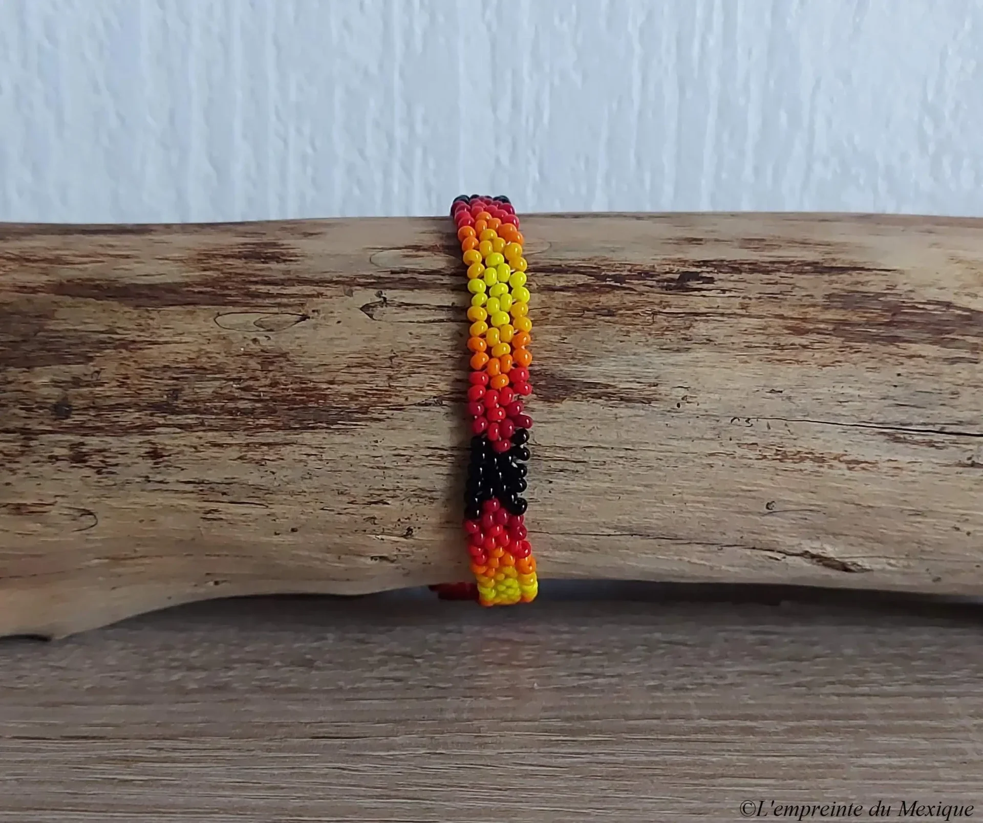 Bracelet fin couleur feu en perles de chaquiras – Art Wixárika