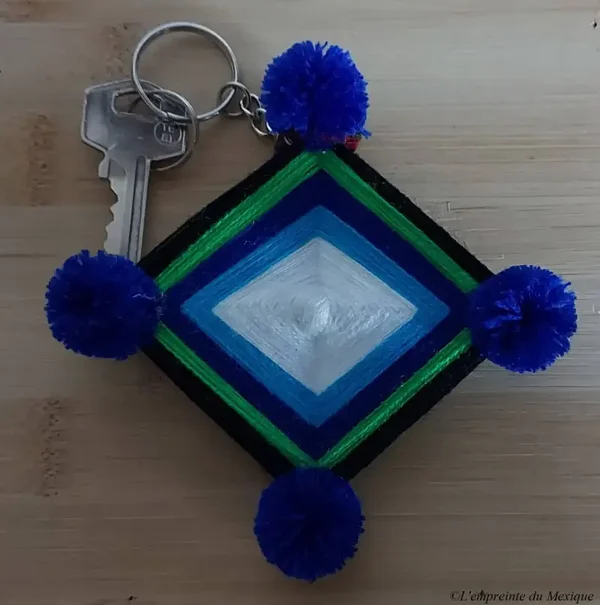 Porte-clés Ojo de Dios bleu – Art Wixárika