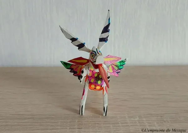 Représentation puissante et colorée, cet alebrije dragon mêle force mystique et protection, sculpté à la main dans le bois de copal selon la tradition zapotèque.