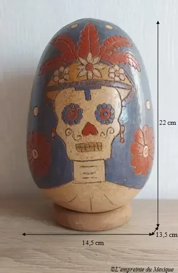 Œuf Catrina – Sculpture en terre cuite polie (barro bruñido)