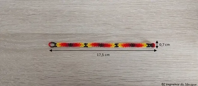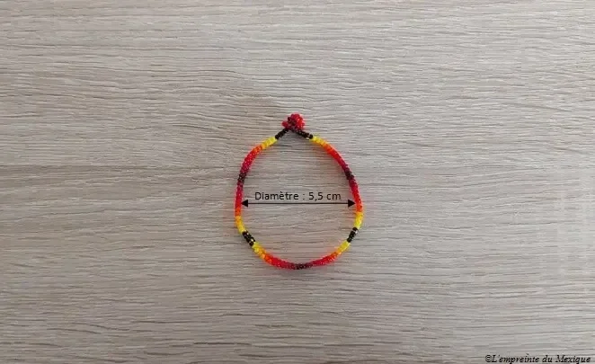Bracelet fin jaune, orange, rouge et noir en perles de chaquiras – Art Wixárika