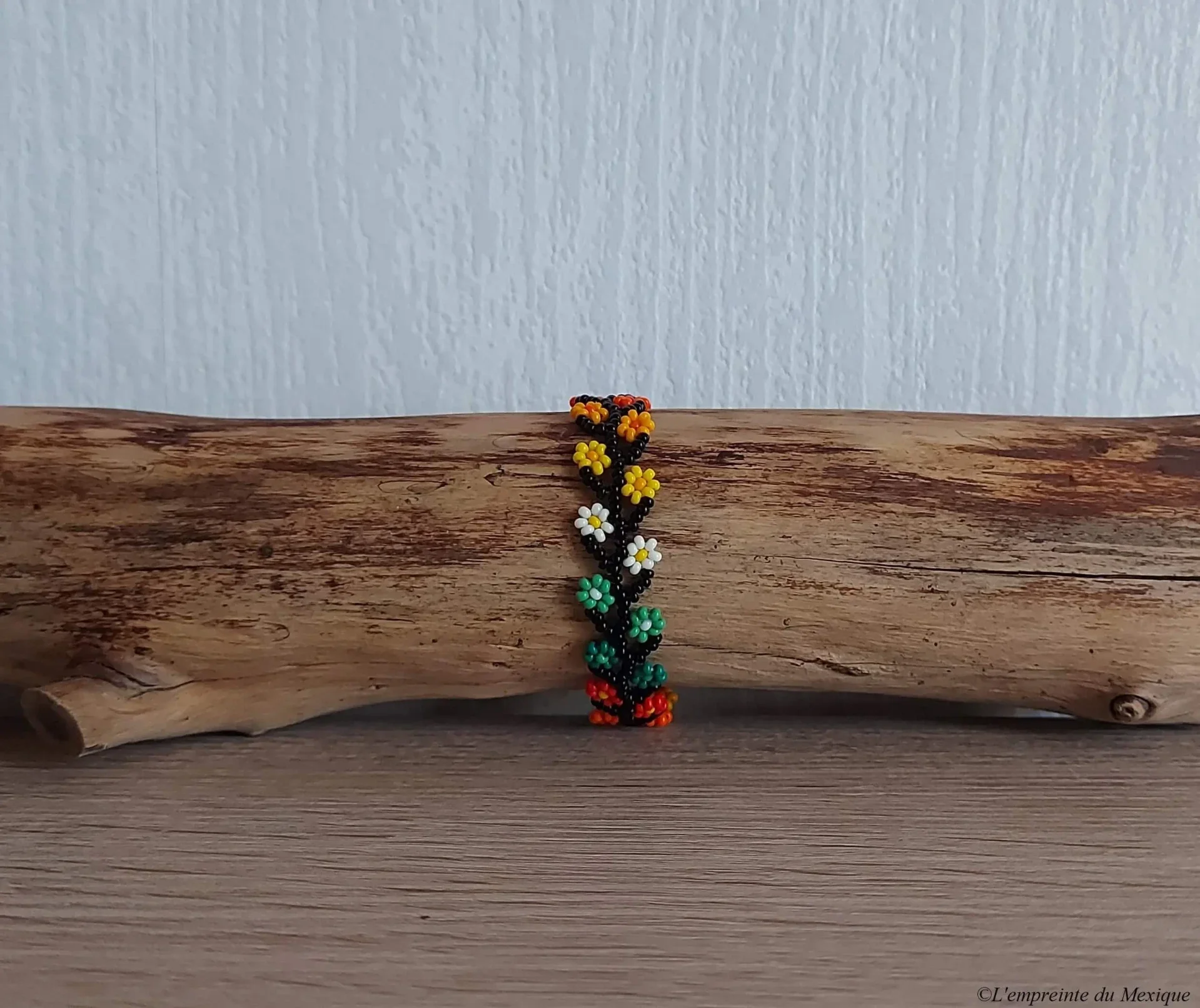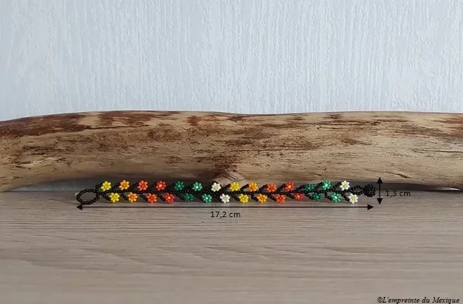 Bracelet fleurs fines de peyotl en perles de chaquiras – Art Wixárika