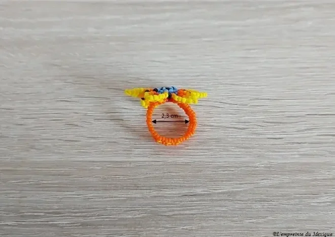 Bague fleur de peyotl jaune en perles de chaquiras – Art Wixárika