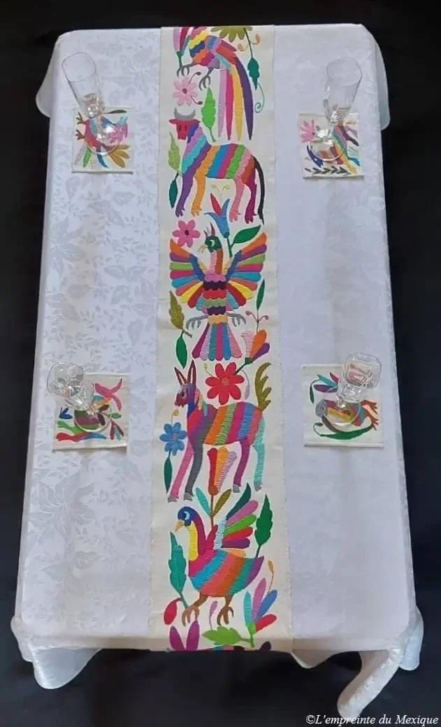 Chemin de table multicolore – Broderie de Tenango - Art Otomi