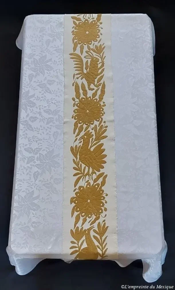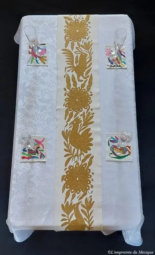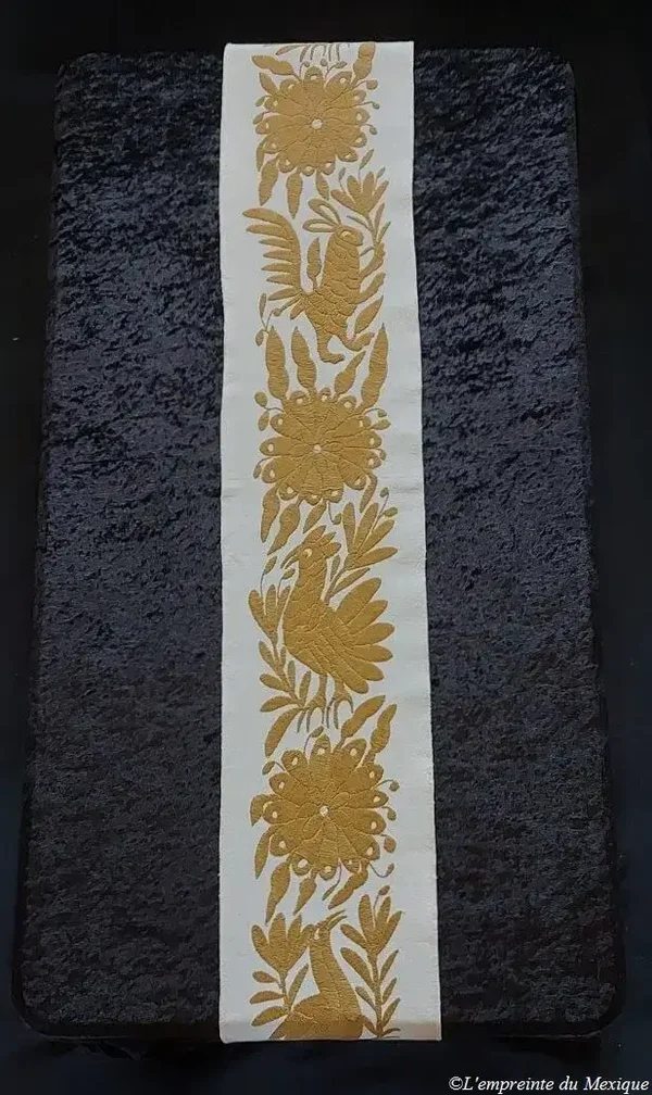 Chemin de table doré – Broderie de Tenango - Art Otomi